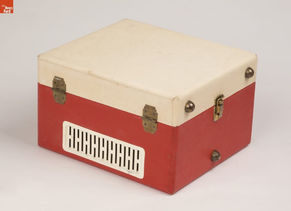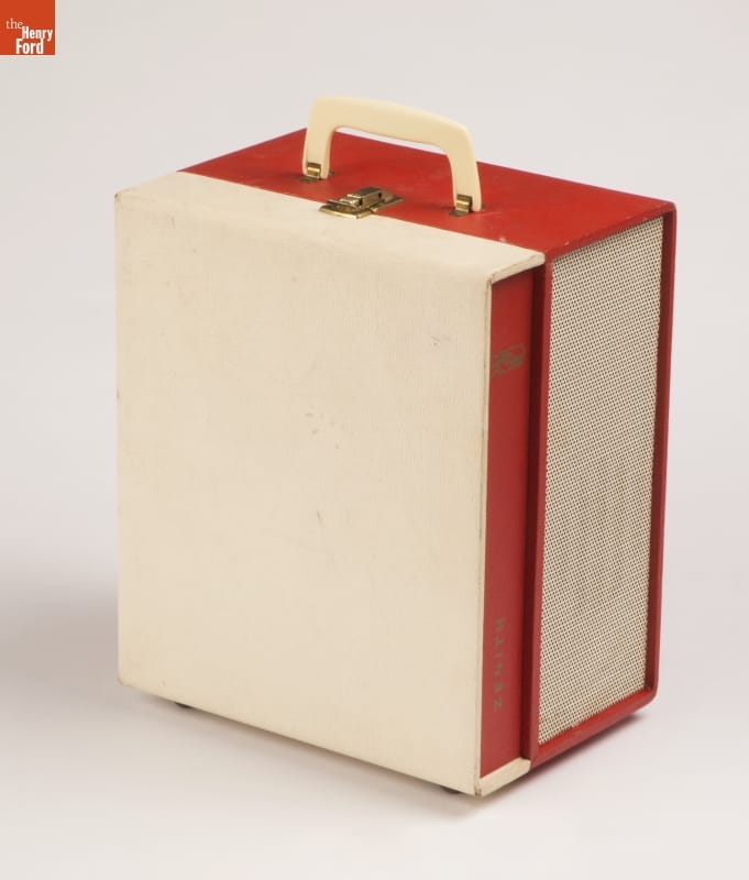 Today, we think of portable music devices as something that can be carried in a pocket. Until the rise of the Walkman in the 1980s, mobile media players where people could select their own music usually meant bulky devices with a convenient handle attached. Zenith was a key client of Mel Boldt and Associates, designers of this player.