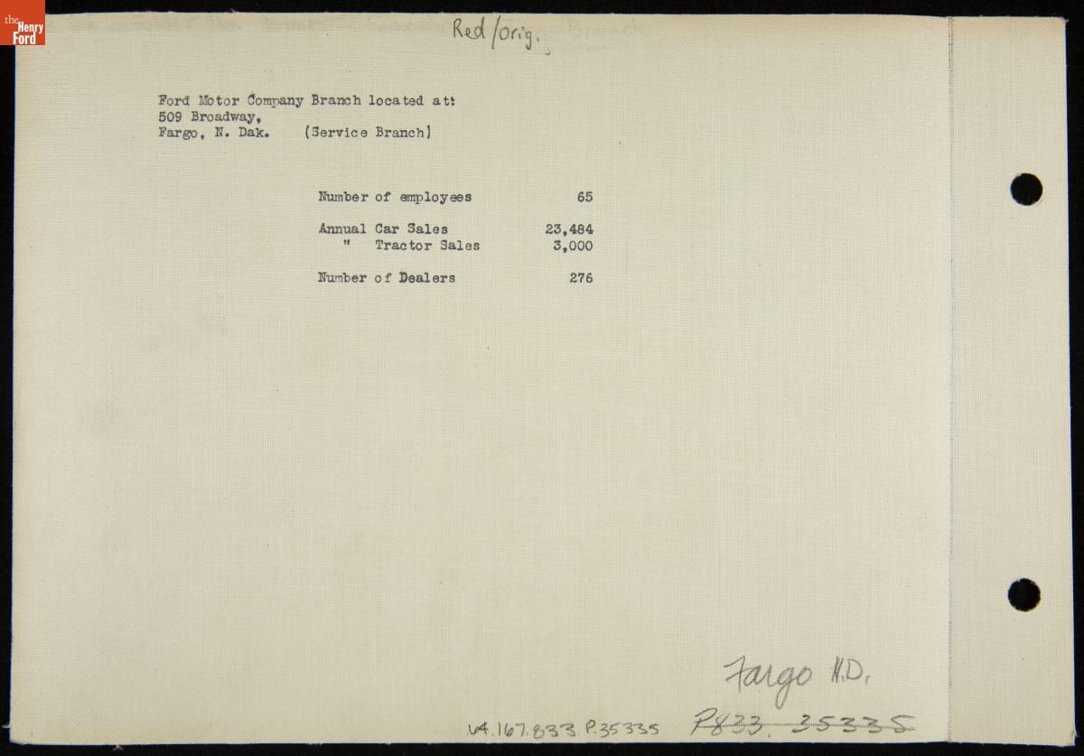 Starting in the early 1910s, Ford Motor Company opened domestic assembly plants throughout the United States. These plants allowed the company to better serve its customers, with facilities located in most major American cities. Ford opened its Fargo, North Dakota, plant in 1915. The plant supplied automobiles to the Dakotas and Montana, and it served as the region's sales and service center.
