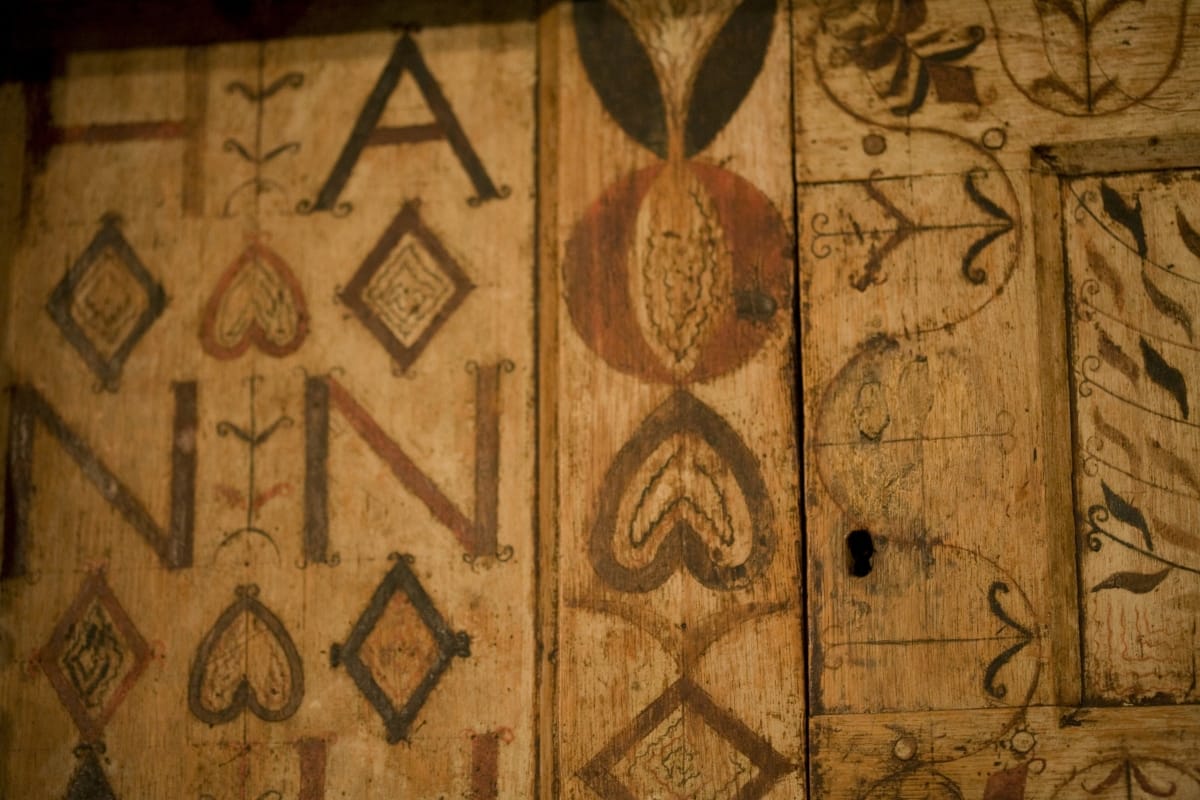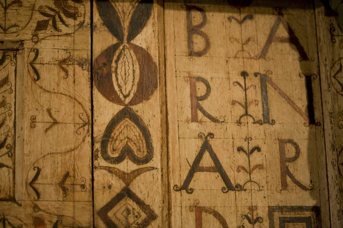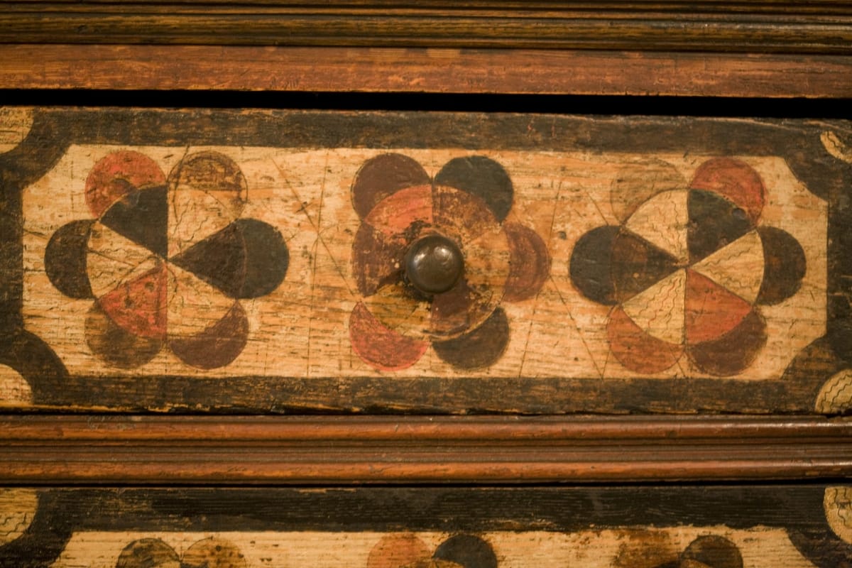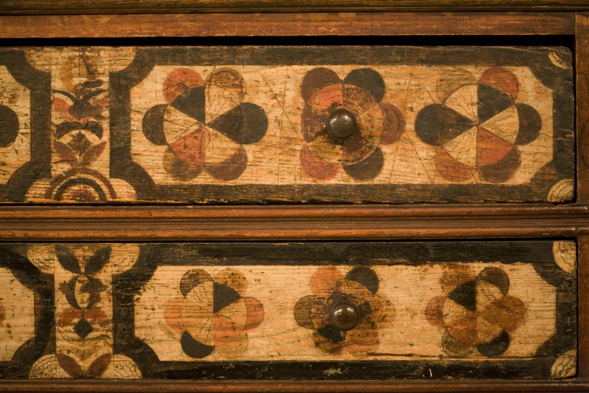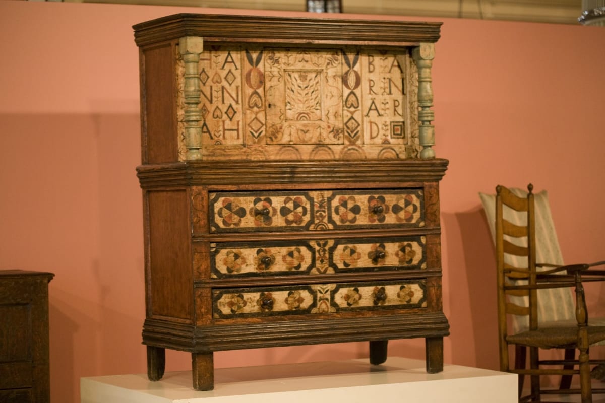 This court cupboard is remarkable because it was made for a woman and prominently features her name. It held newlywed Hannah Barnard's precious household belongings -- silver or pewter, ceramics, and linens. In addition to providing storage space, the gloriously decorated cupboard symbolized Hannah's wealth and status and served as a vibrant work of art in her Hadley, Massachusetts, home.