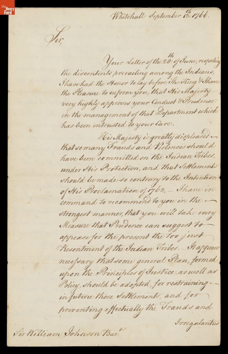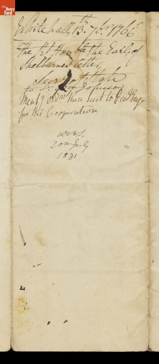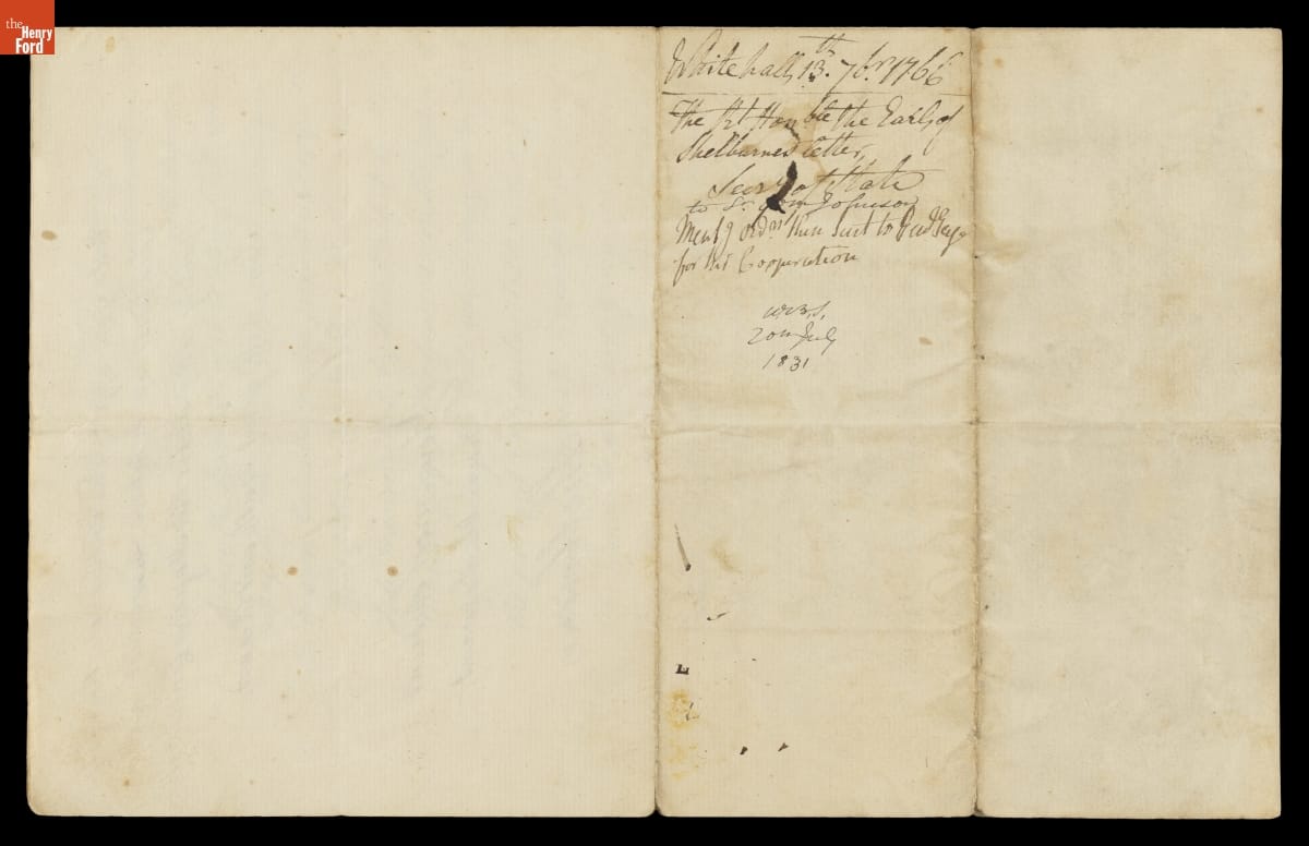 Letter from William P. Fitzmaurice, Earl of Shelburne, to William Johnson, September 13, 1766