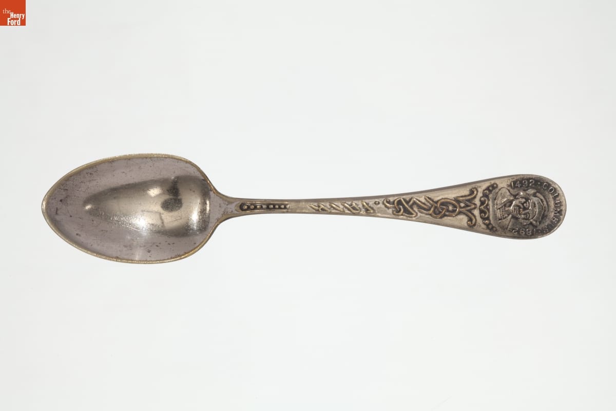 More than 25 million visitors attended the World's Columbian Exposition - which celebrated the 400th anniversary of Christopher Columbus's landing in America - in Chicago during 1893. Many fairgoers returned home with mementos of the exhibition, such as this souvenir spoon featuring a portrait of Columbus.