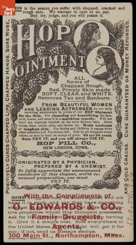 Trade Card for Hop Ointment, "The National Remedy for the Skin," Hop Pill Co., 1887
