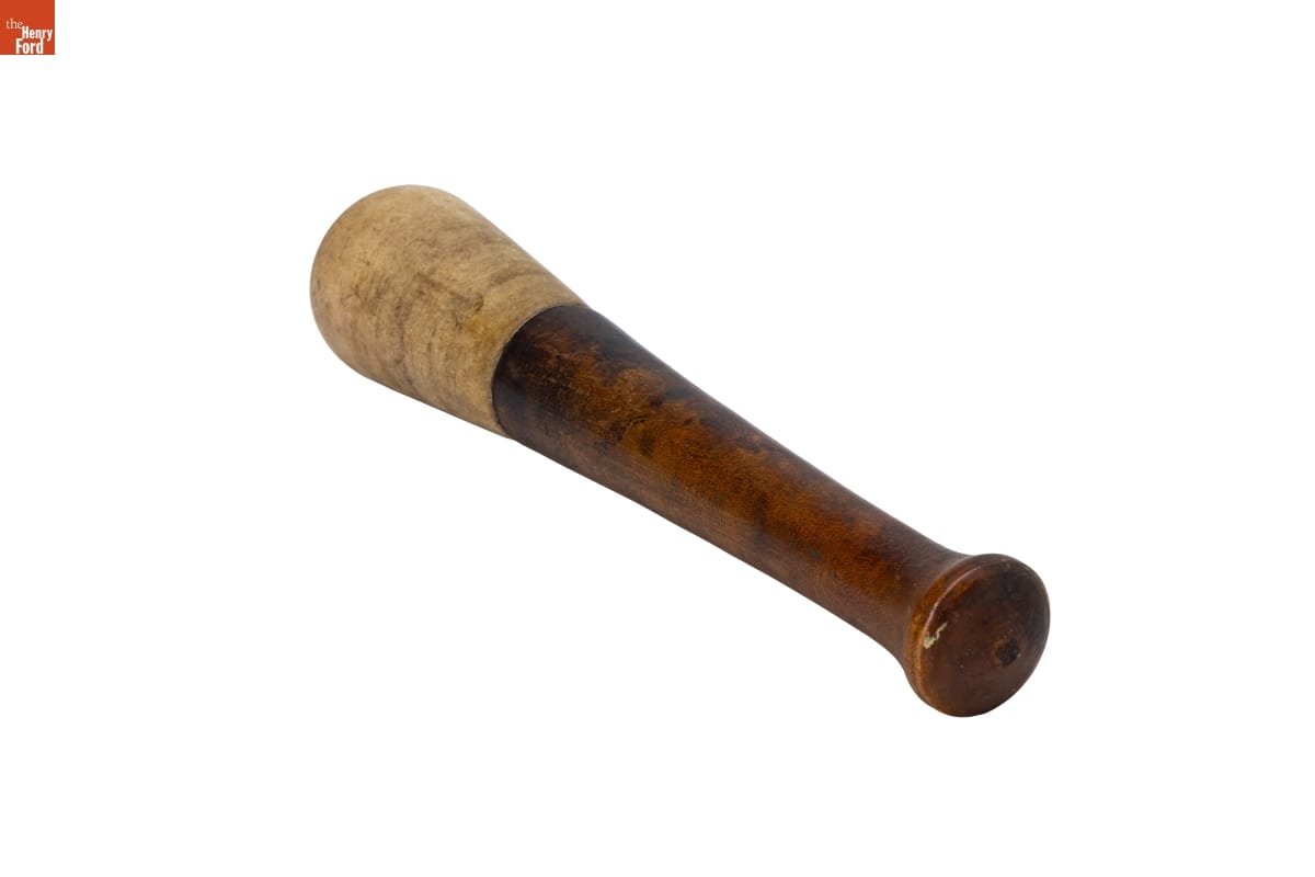 Veterinarians used a mortar and pestle to crush, grind, and blend medicines into a powder or paste. Creating powdered medicine from solid tablets and dissolving it in liquids helped veterinarians administer medicine easily and safely so it acted quickly. This mortar and pestle belonged to M. C. Bigelow, a veterinary doctor from Flushing, Michigan.