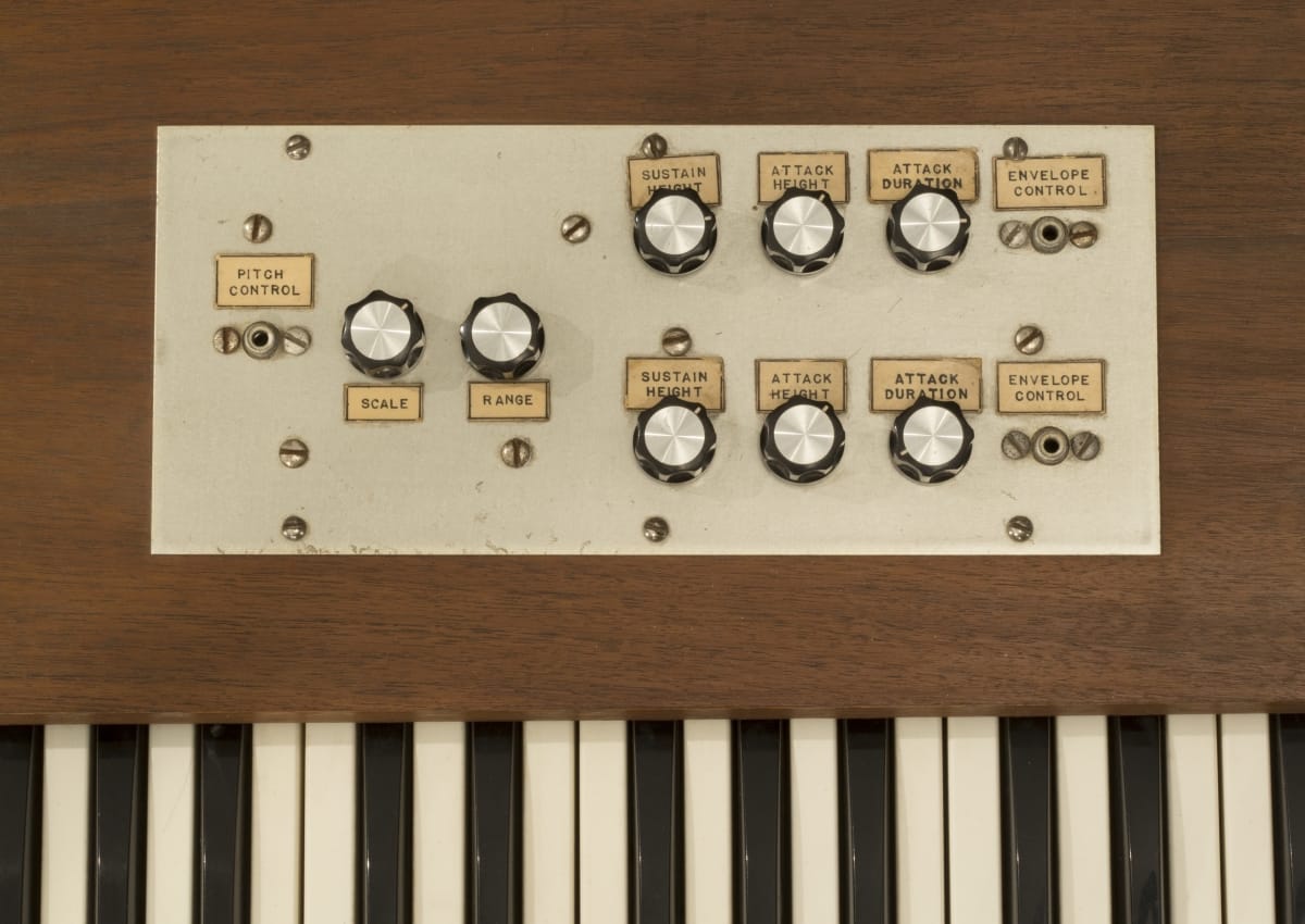 This prototype synthesizer--a collaboration between engineer Robert Moog and composer Herbert Deutsch--is a musical icon. Synthesizers create unique electronically produced sounds. Moog's solid-state synthesizer was musically superior and much more portable than earlier vacuum-tube-based systems. In 1968, the album Switched-On Bach introduced the Moog synthesizer to a wider audience. Synthesizers quickly became a mainstay of popular music.