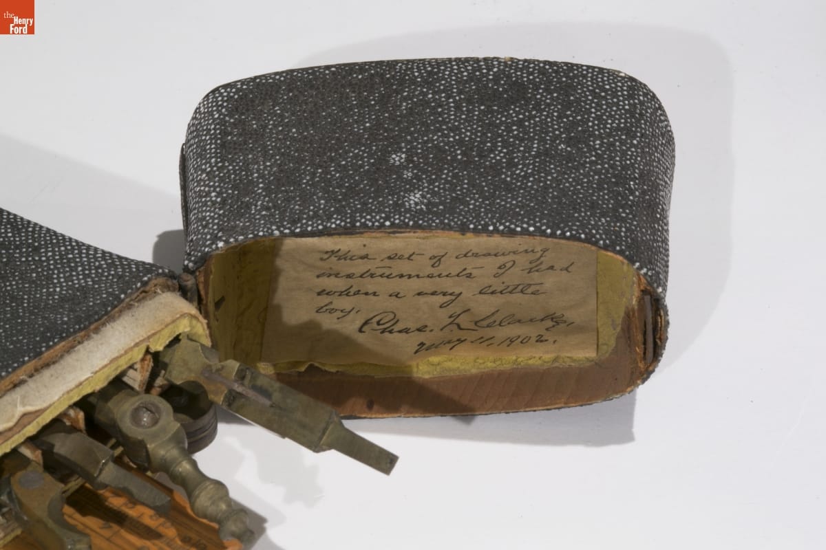 This set of drawing instruments- I had when a very little boy Chas. L. Clarke, May 11, 1902