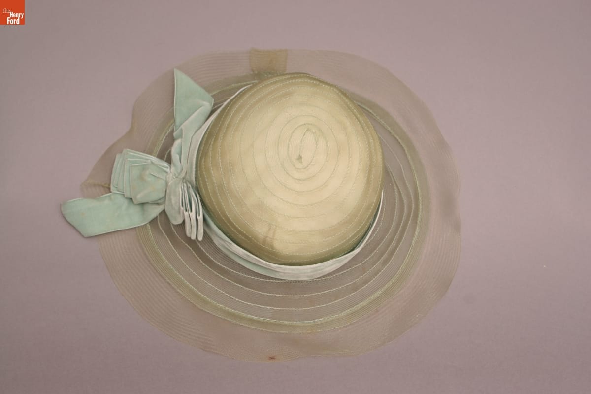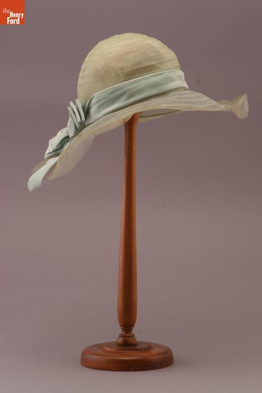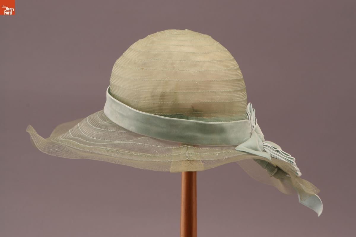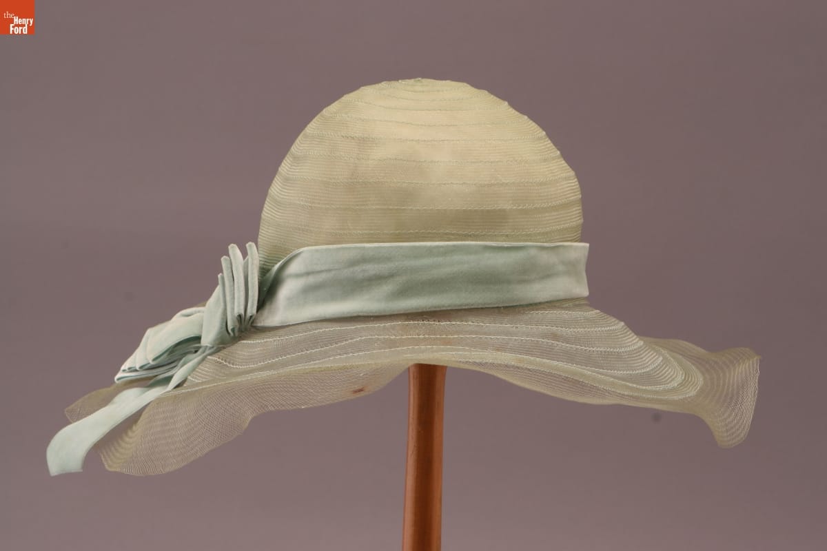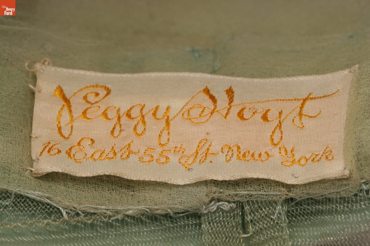 Peggy Hoyt (1893-1937) began her fashion career at age 17, as an apprentice in a New York City millinery shop. She established Peggy Hoyt, Inc., in 1915 and soon became one of America's foremost fashion designers. This hat of Hoyt's design was worn by Elizabeth Parke Firestone, wife of tire magnate Harvey S. Firestone, Jr.