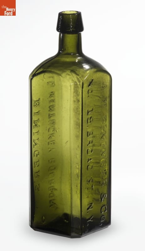 Abraham Bininger established a grocery business in New York City in the late 1700s. Family descendants carried on the trade into the late 1800s, selling alcoholic spirits in bottles with a variety of shapes. The bottles were often embossed with Bininger's name and description of the contents.