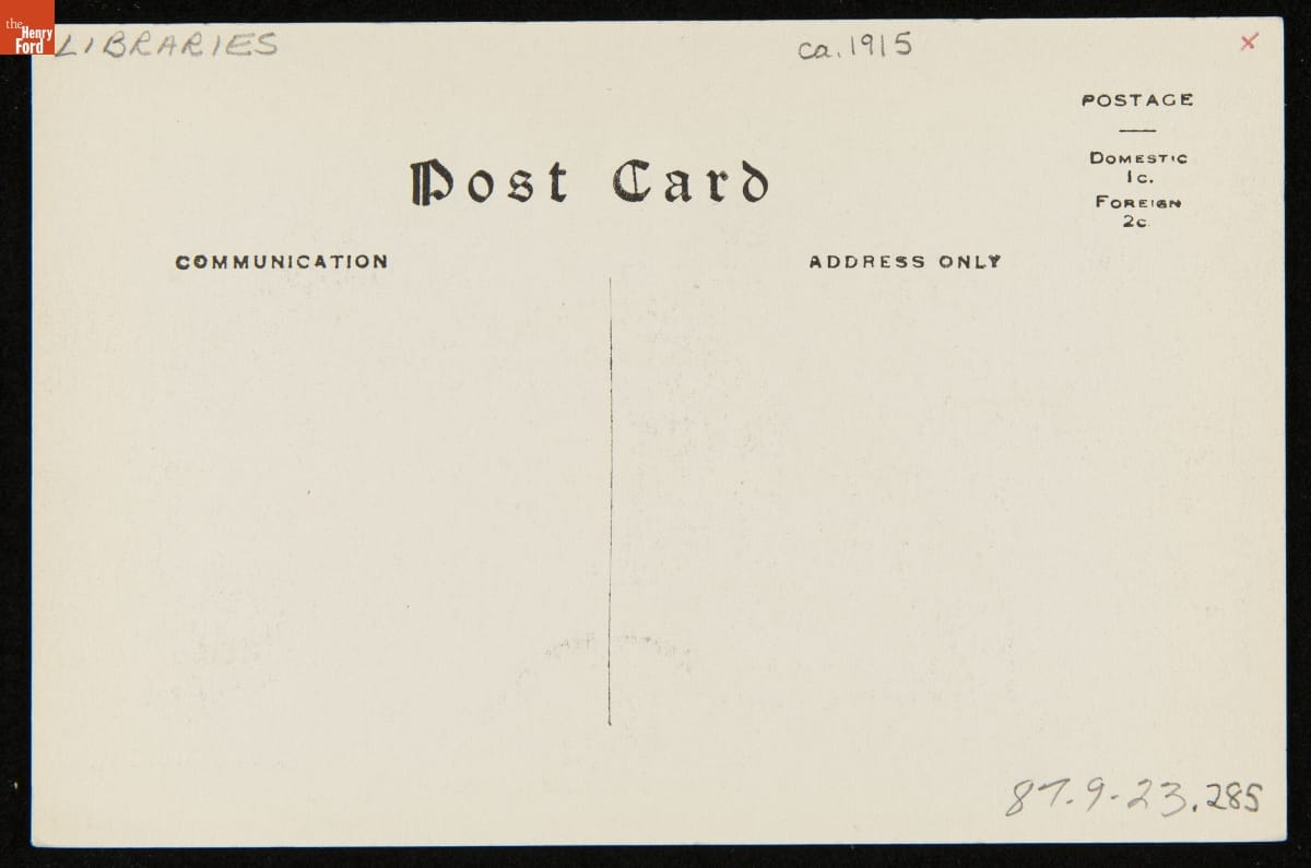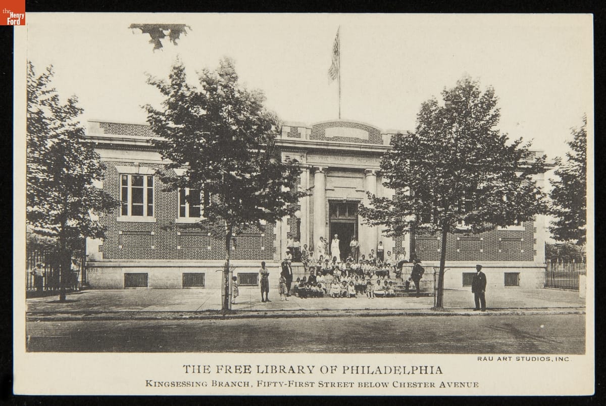 Postcard, "The Free Library of Philadelphia, Kingsessing Branch, Fifty-First Street Below Chester Avenue," circa 1918