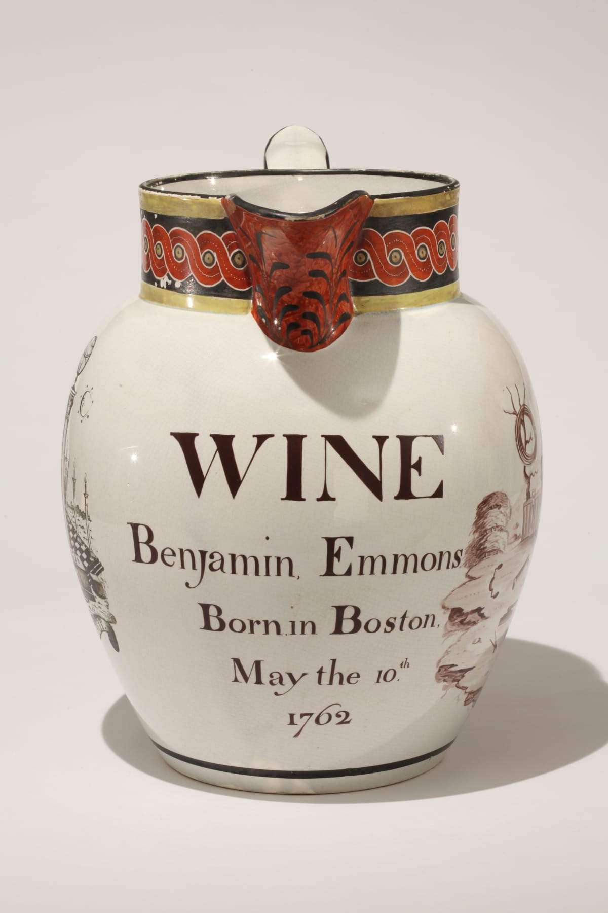 "Wine/ Benjamin Emmons/Born in Boston, /May the 10th/1762"; "The South View of the Earthenware/ Manufactory of Wood and /Caldwell Burslem/ Staffordshire"