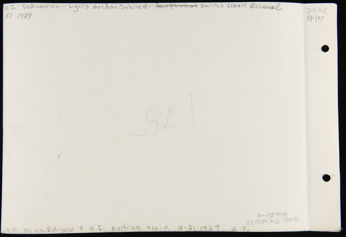 On October 21, 1929, Henry Ford hosted an elaborate celebration in Dearborn, Michigan, to honor his friend Thomas A. Edison. Known as Light's Golden Jubilee, the date marked the 50th anniversary of Edison's invention of a practical incandescent lamp. The day's festivities began with Edison's arrival -- escorted by Ford and President Hoover and their families -- at Smiths Creek Station in Ford's Greenfield Village.