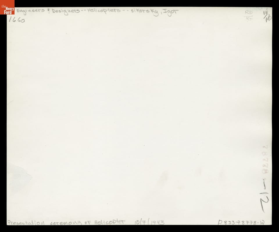 Speaker's Platform for the Vought-Sikorsky VS-300 Helicopter Presentation at Henry Ford Museum, October 7, 1943
