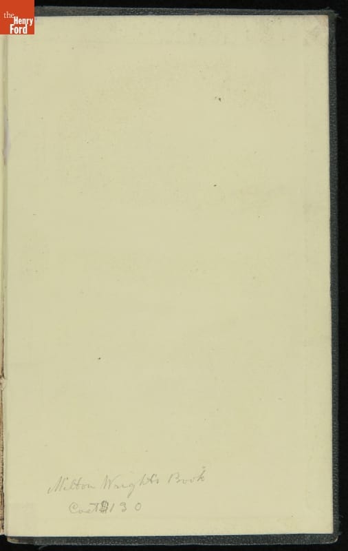 Milton Wright maintained an extensive library in his Dayton, Ohio, home. Wright was a Bishop of the Church of the United Brethren in Christ, so it's not surprising that religious studies, hymnals, and rhetoric guides were among his volumes. Wright's sons, Wilbur and Orville, used the bishop's books on physics and ornithology to start their research on the problem of human flight.