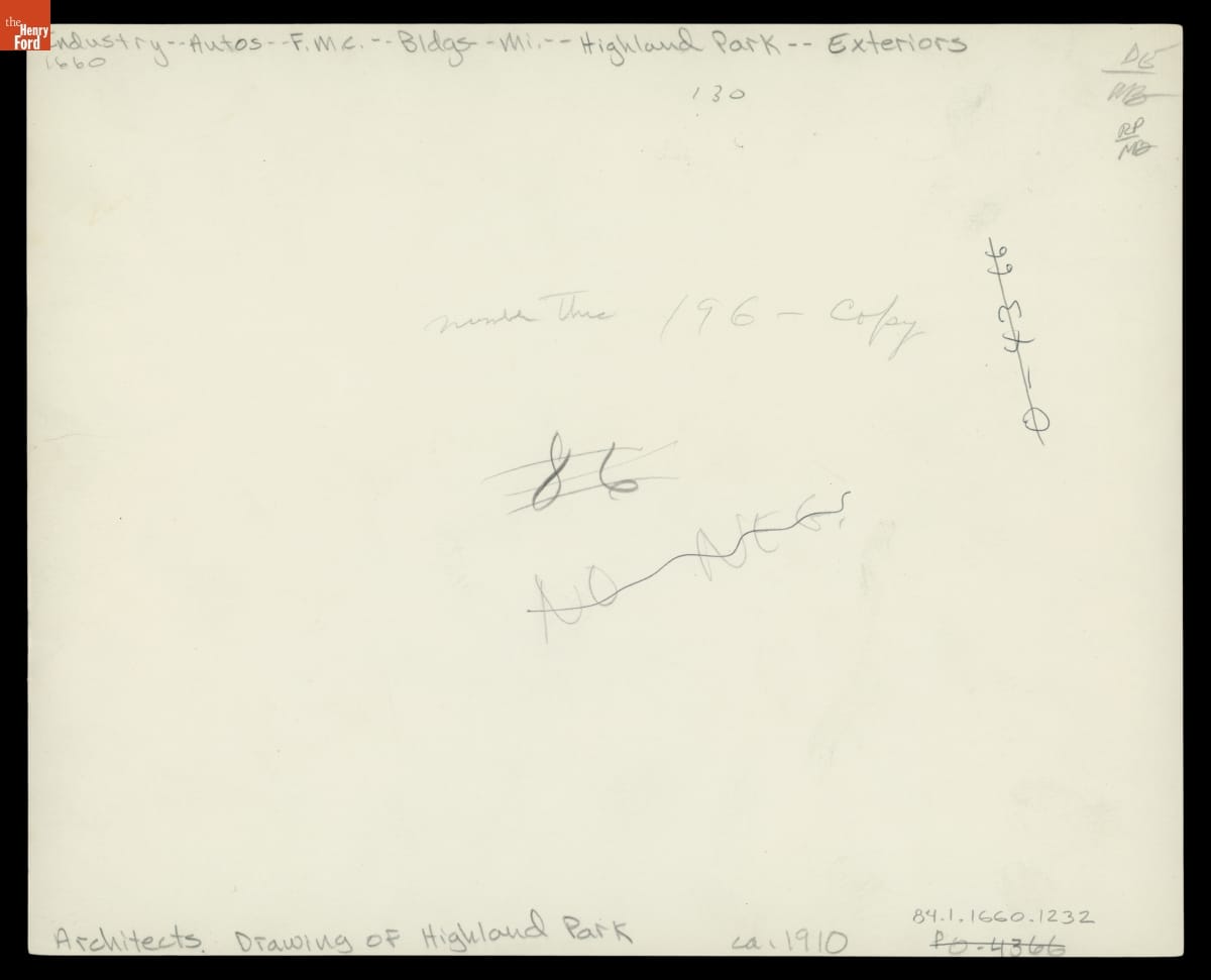 Ford Motor Company moved into its Highland Park plant, some six miles northwest of Detroit's city center, in January 1910. Designed by architect Albert Kahn, the factory featured steel-and-concrete construction and ample glass to admit sunlight. Administrative offices were housed in an impressive four-story Administration Building on Woodward Avenue. Ford developed its highly influential moving assembly line at Highland Park.