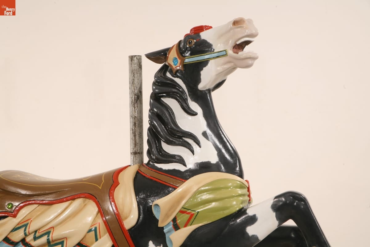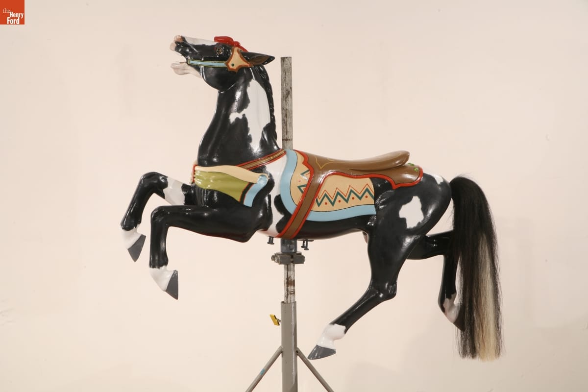 This hand-carved figure was made by the Herschell-Spillman Company, the largest U.S. carousel manufacturer between 1904 and 1920. Carousels were extremely popular in amusement parks and seaside resorts at this time. Called a "jumper," the figure moved up and down as the carousel revolved. It is part of an operating carousel in Greenfield Village.