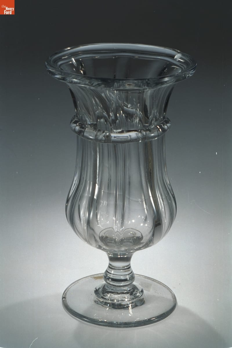 Class-conscious Americans in the 19th century displayed their social standing by serving a variety of exotic foods in specialized tableware. Celery vases or glasses held the costly and status-laden vegetable. This tall, mold-blown glass vase became a middle-class necessity until growing methods made celery common and the dish less socially significant.