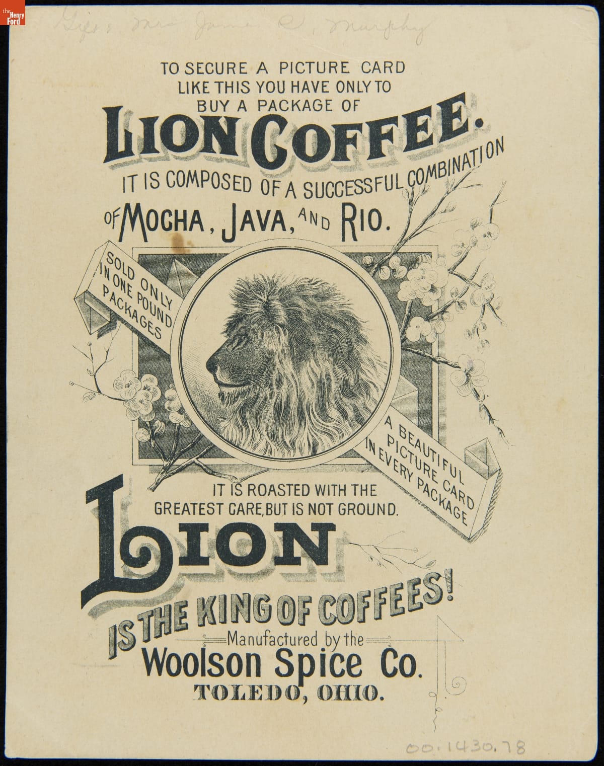 Trade Card for Lion Coffee, Woolson Spice Co., 1882-1900