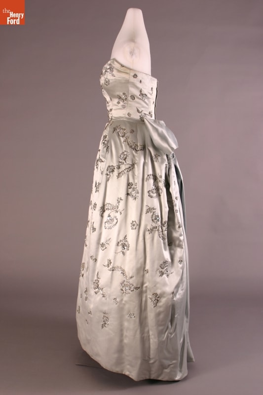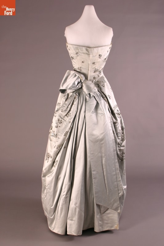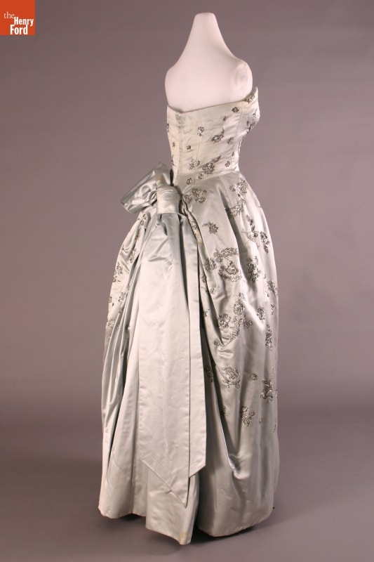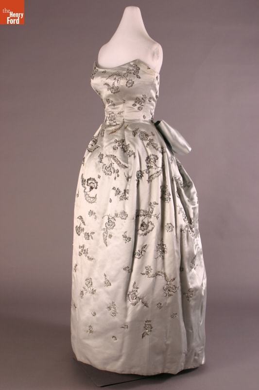 Elizabeth Parke Firestone's refined sense of fashion reflected years of interest in clothing design and collaboration with world-renowned couturiers. Firestone requested this custom gown from the Paris design house of Christian Dior for the November 5, 1955, Vienna Opera House reopening. Later that month, Firestone--wearing the blue-grey ball gown with metallic embroidery and iridescent rhinestones--was featured in LIFE magazine.