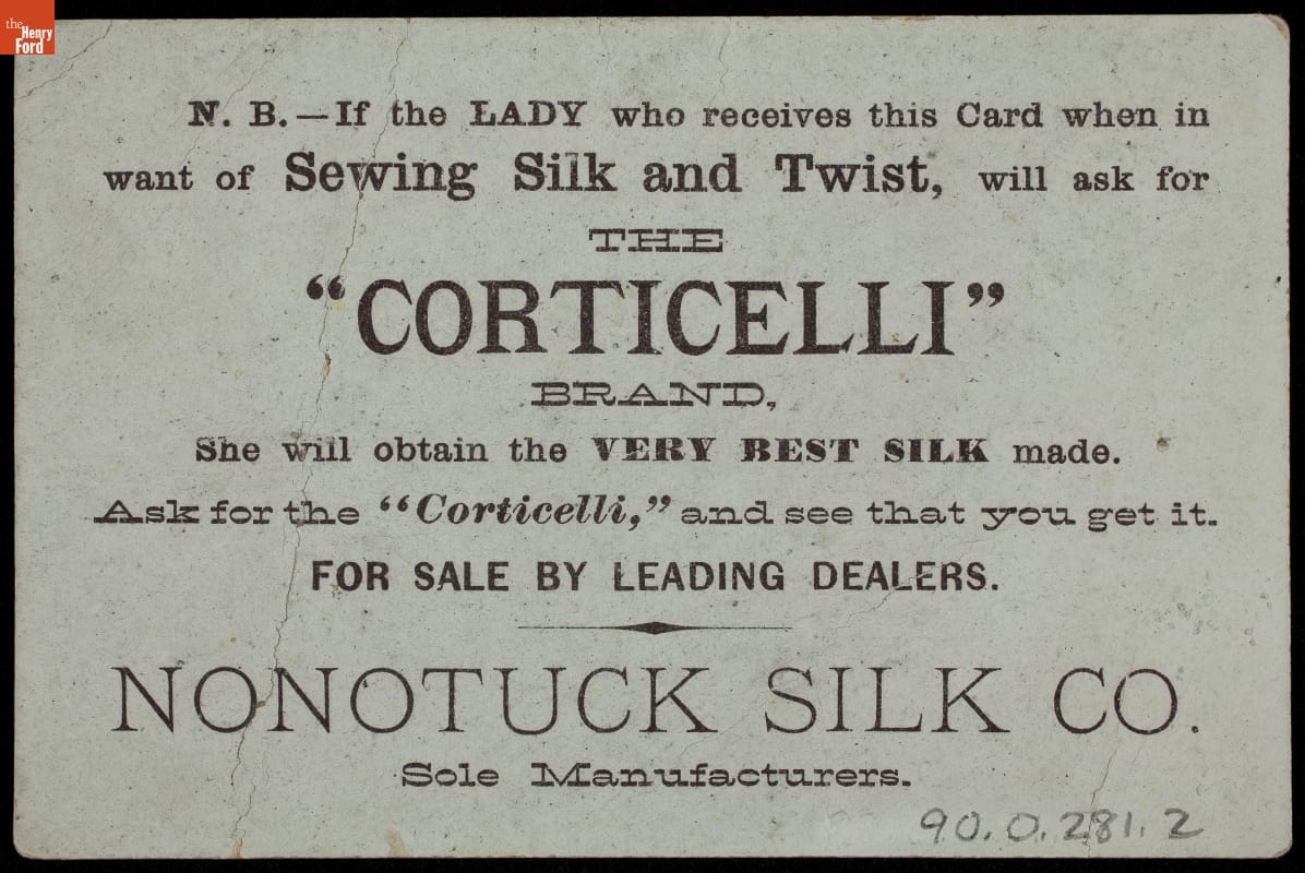 Trade Card for Florence Knitting Silk and Corticelli Silk Thread, Nonotuck Silk Co., 1880-1900