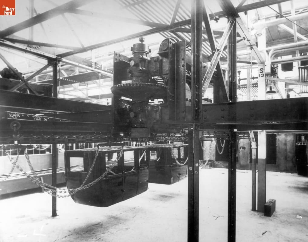 Ford Model T Bodies on a Conveyor at the Highland Park Plant, circa 1925