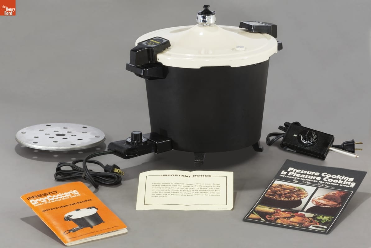The National Pressure Cooker Company introduced the first saucepan-style pressure cooker under the brand name "Presto" in 1939. Fueled by its popularity, the company -- eventually renamed National Presto Industries -- expanded and diversified while continuing to produce an ever-improving line of pressure cookers. In the 1960s and 1970s, distinctive styling by Mel Boldt and Associates helped set Presto pressure cookers apart from the competition.