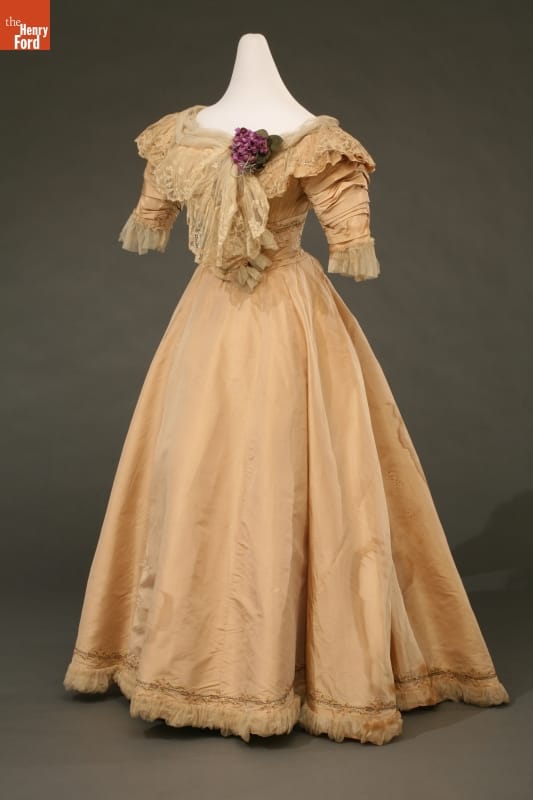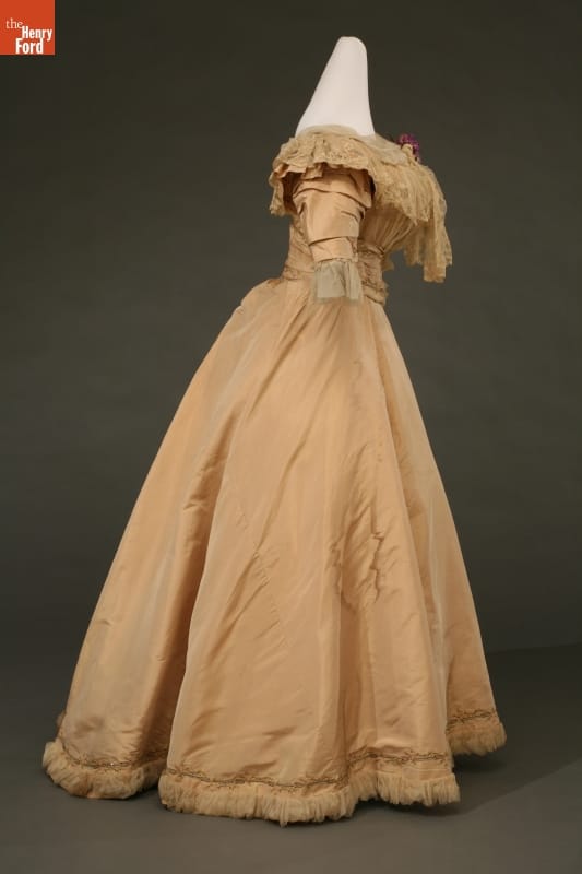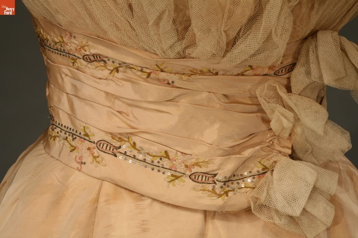 Skirt made by dressmaker Margaret McGlogan in Detroit, Michigan; bodice made by Rauditzala in Paris, France.