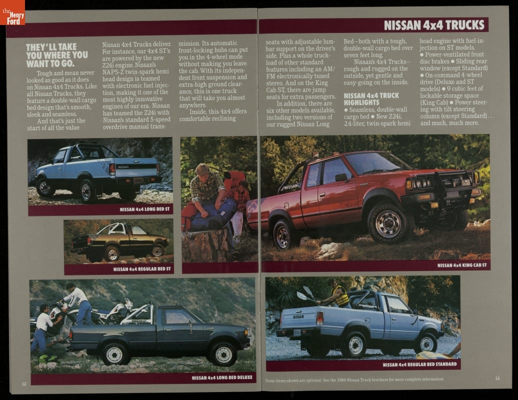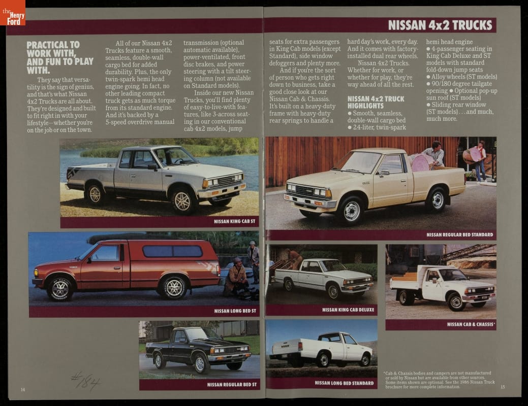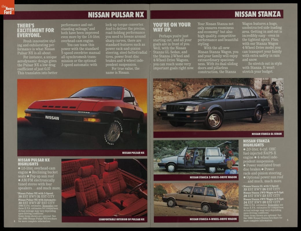Sales Brochure for 1986 Nissan Cars and Trucks, "Quality at Every Turn"
