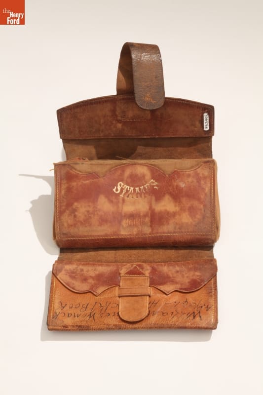 Written on the inside flap of this wallet are the words, "William James Womack, A.D. 1861, His Pocketbook." Womack's daughter recalled that her father brought the wallet, and the two ten dollar Confederate bills it contained, back from the South during the Civil War. Many Civil War soldiers collected such "souvenirs" while serving in the army.