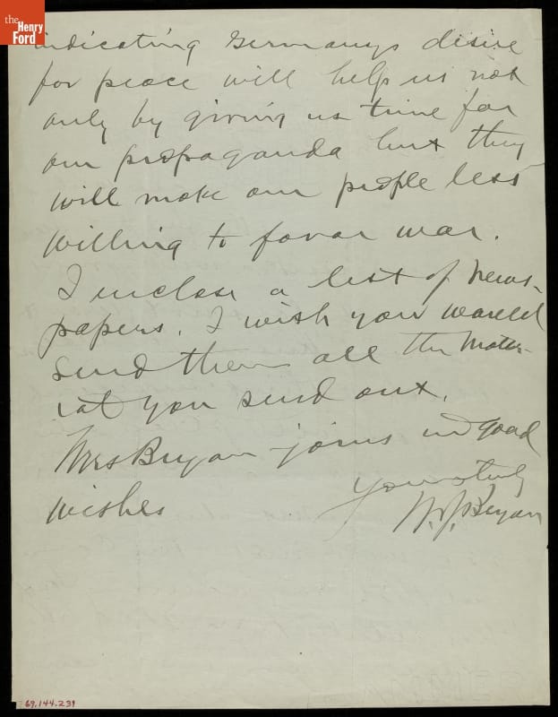 THF209738 / Letter from William Jennings Bryan to George Foster Peabody, 1917
