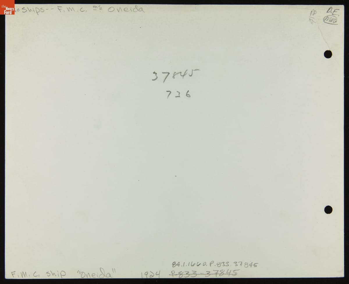In the 1920s, Henry Ford assembled a fleet of cargo carriers, ocean-going ships, barges, tugboats and canal boats to bring raw materials to or take finished products from his new manufacturing complex on the Rouge River. The Oneida, a small ocean-going freighter acquired in 1923, carried automobile parts to Ford plants along America's Atlantic and Gulf coasts, and to foreign plants in South America and Europe.
