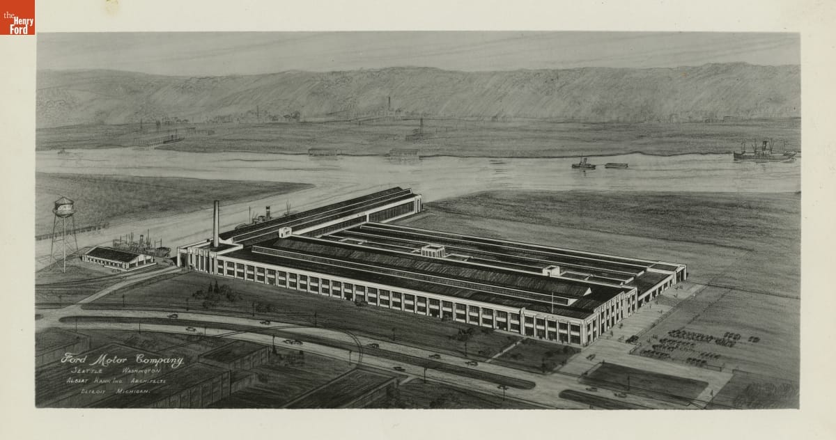 Ford Motor Company built this Albert Kahn-designed assembly plant in Seattle, Washington. The building's one-story design and its accessibility to river, road, and rail transportation systems promoted production efficiencies that would help lower vehicle costs. Unfortunately, the building was completed in 1932 at the height of the Great Depression. After producing only 2,000 vehicles, assembly stopped.