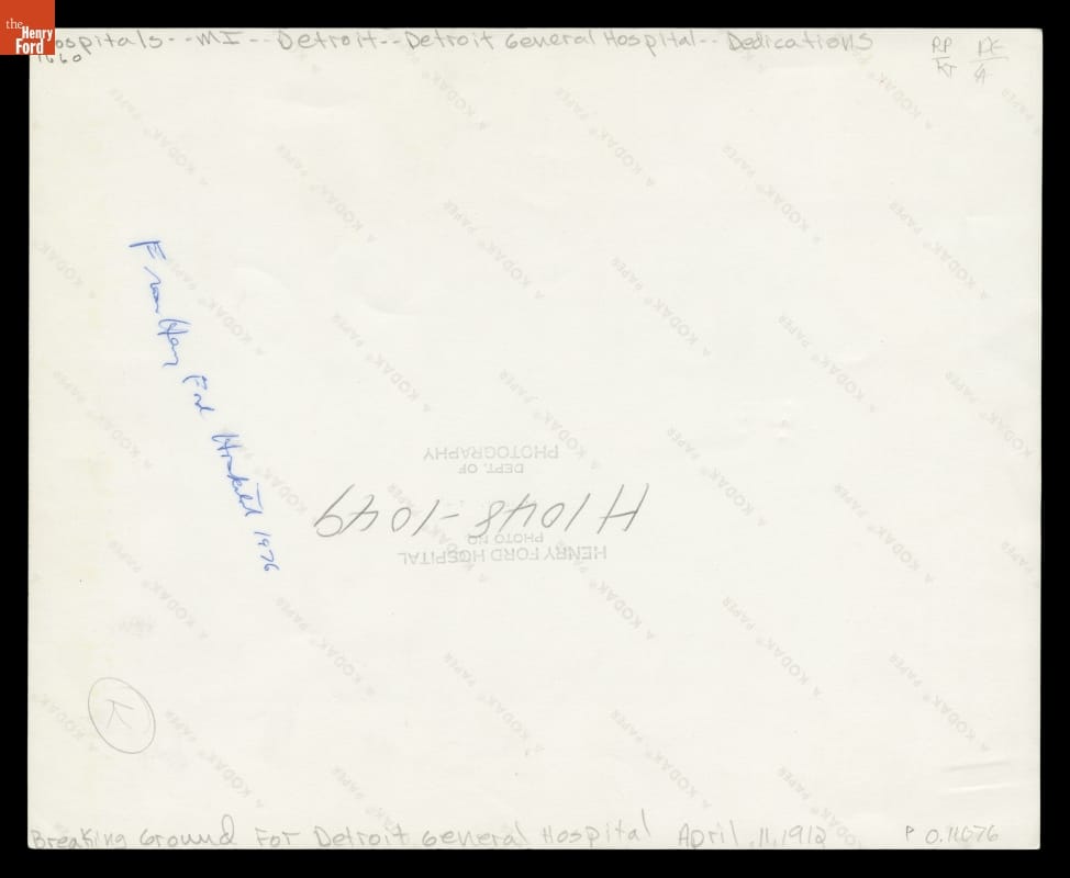 Original photography by Detroit Publishing Co., Detroit, Michigan. Copied by Henry Ford Hospital Photography Department.