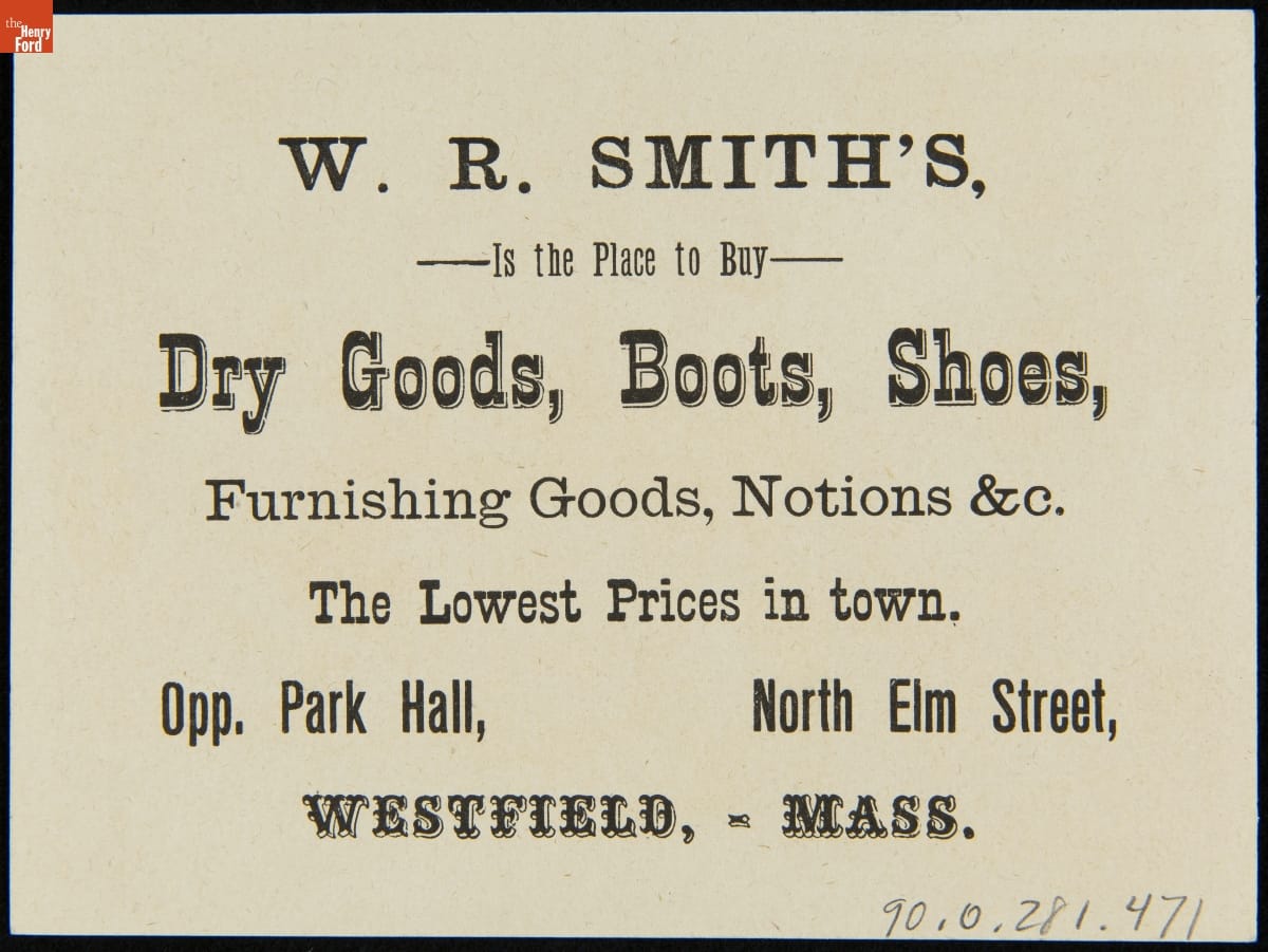 Manufactured by Whittemore Bros. & Company, Boston, Massachusetts. Retailed by W.R. Smith, Westfield, Massachusetts. Lithographed by J.H. Bufford & Company.