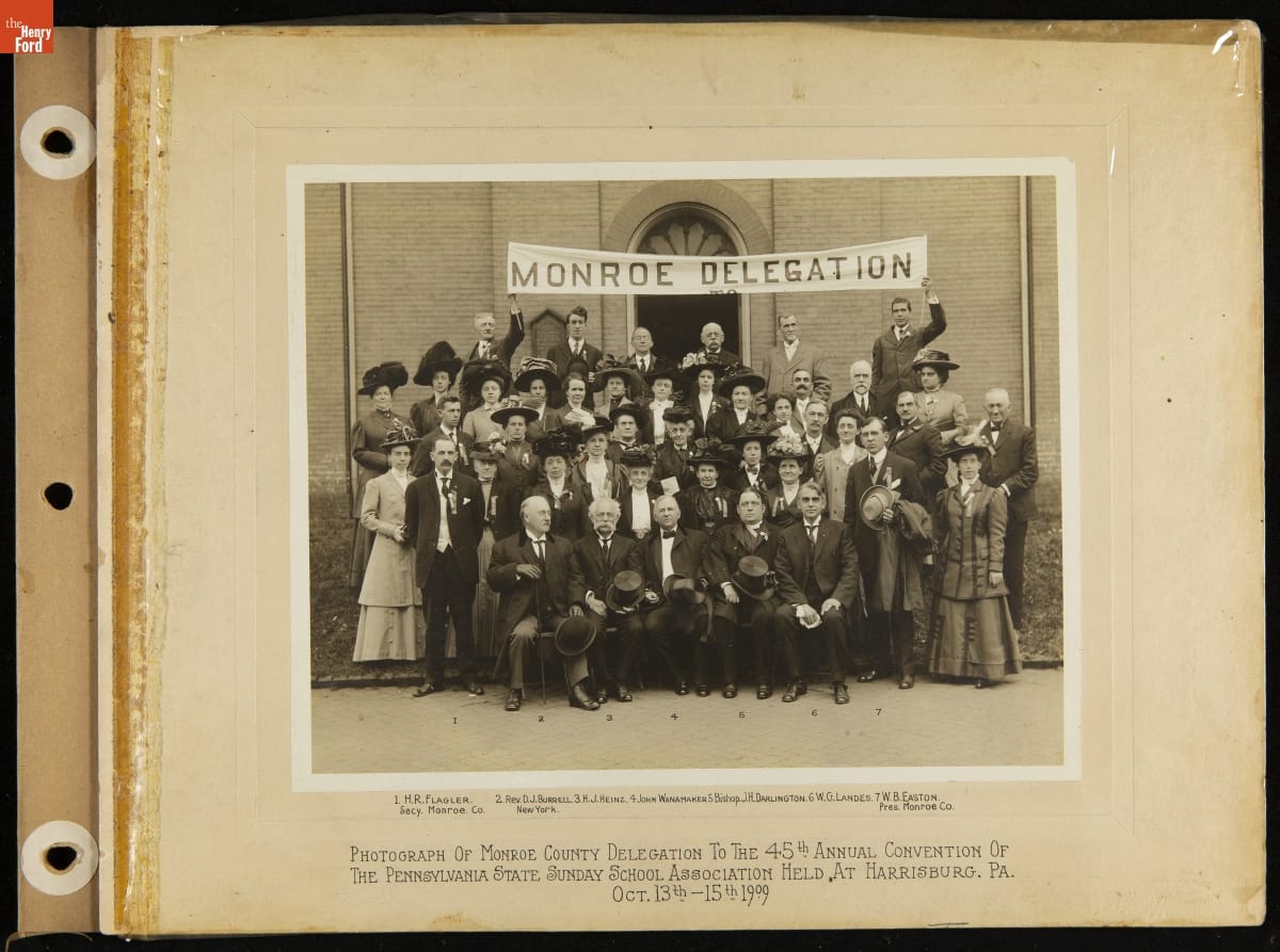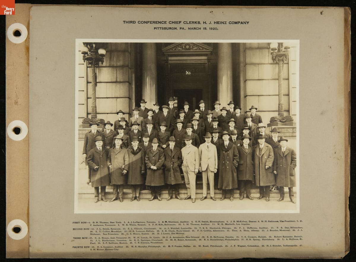 Company scrapbooks are often reminders of the company's history, significant moments in time, and the employees who worked there. This album, compiled by the H. J. Heinz Company, includes photographs and portraits of H. J. Heinz, company sales personnel, employees, and friends of H. J. Heinz.