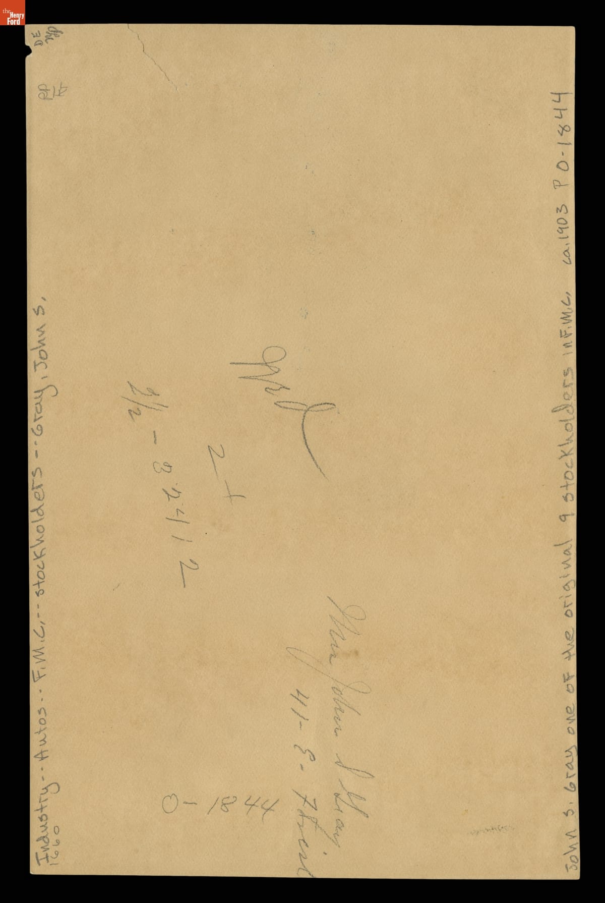 John S. Gray, One of the Original Stockholders in Ford Motor Company, circa 1903