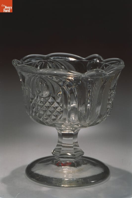 Nineteenth-century American glassmakers experimented with new methods to create products for a growing consumer market. In the 1820s, pressing glass into metal molds by machine was perfected, and by the mid-1800s, manufacturers were creating a variety of inexpensive pressed glass housewares. America's middle-class consumers could now decorate their homes with attractive glass bowls, creamers, dishes, plates, vases, and other tableware.