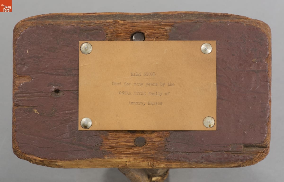 MILK STOOL / Used for many years by the / OSCAR MEYER family of / Lenora, Kansas