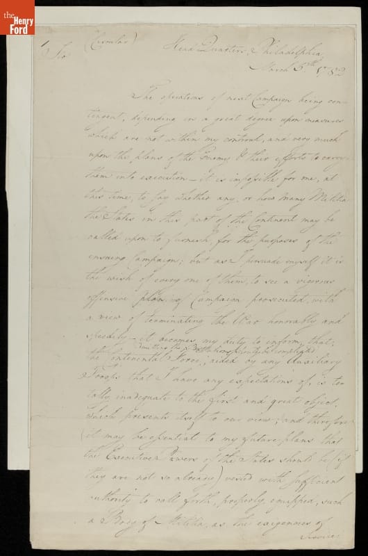 Letter signed by George Washington in Philadelphia, Pennsylvania