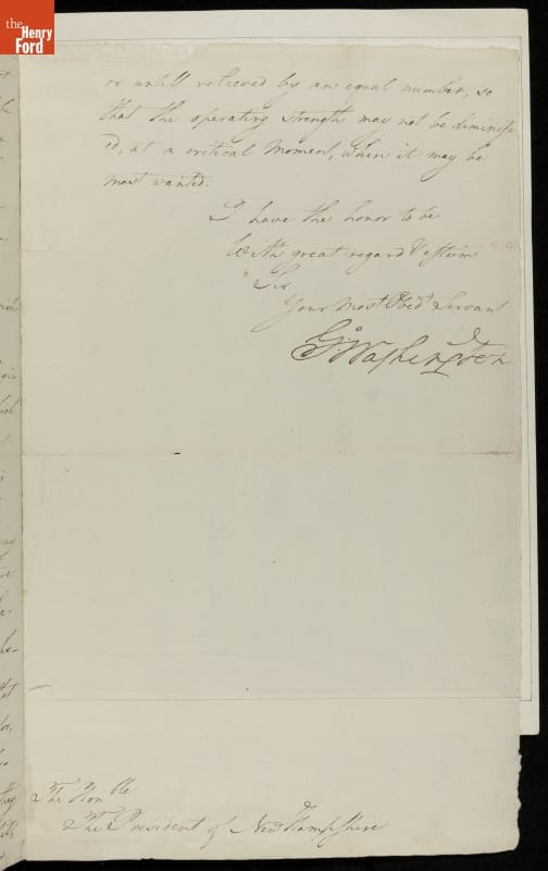 Letter from George Washington to "The President of New Hampshire," Meshech Weare, 1782
