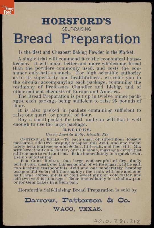 Trade Card for Horsford's Self-Raising Bread Preparation, Rumford Chemical Works, 1876-1900