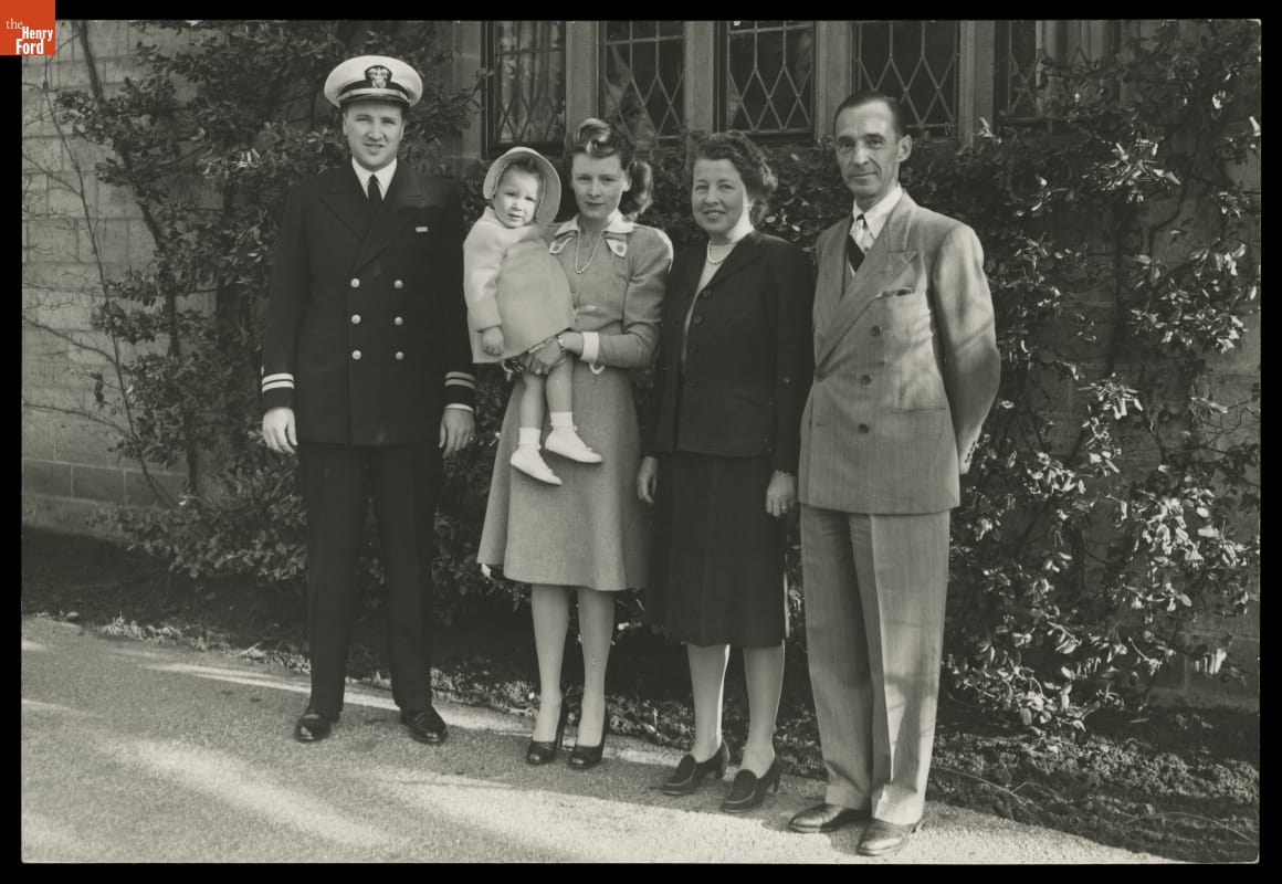 Edsel and Eleanor Ford posed with their daughter-in-law Anne, their granddaughter Charlotte, and their son Henry Ford II in 1943. When Edsel Ford passed away that May, Henry Ford II was released from the Navy so that he could return to Detroit to prepare for his eventual appointment to Ford Motor Company's presidency.