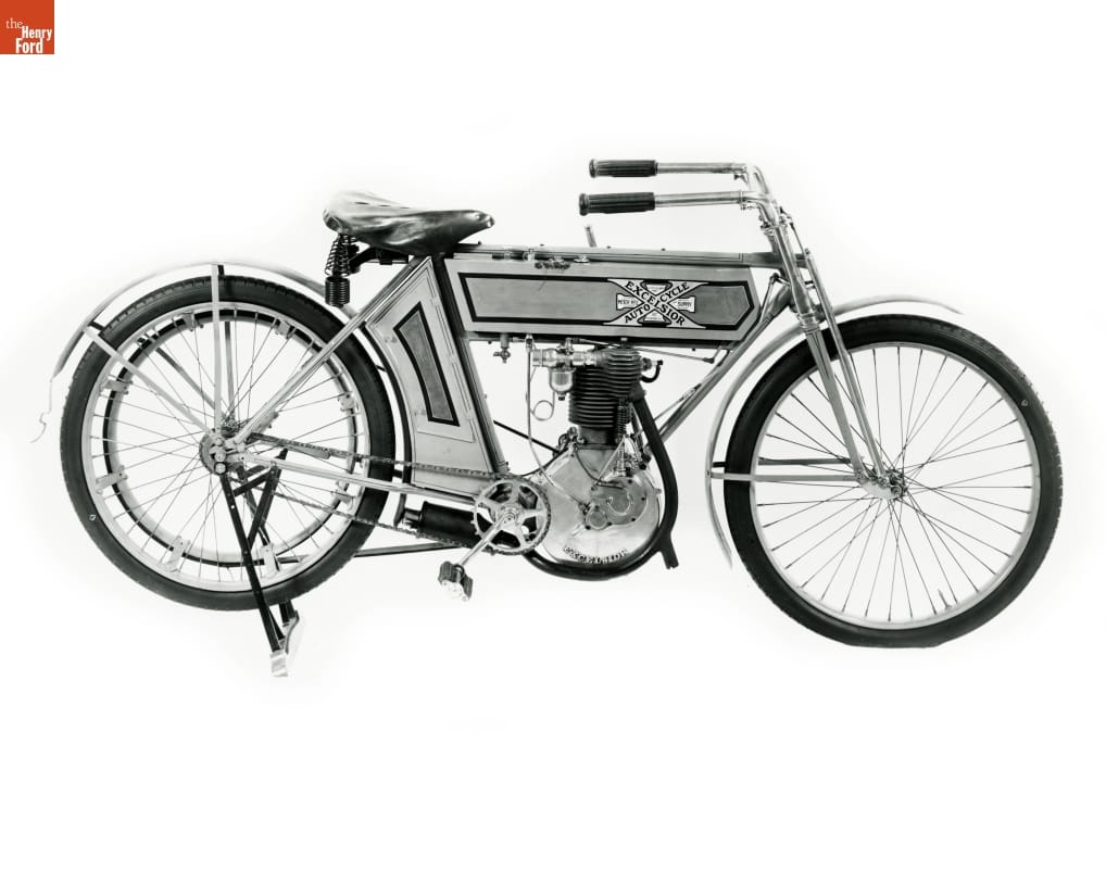 Excelsior Motor Manufacturing & Supply Company joined the motorcycle business in 1907. Its 1909 models featured an efficient lubrication system that, in the company's words, kept oil in the engine rather than "over the exterior of the machine and the person of the rider." The economical Autocycle could travel nearly 200 miles on a single two-gallon tankful of gasoline.