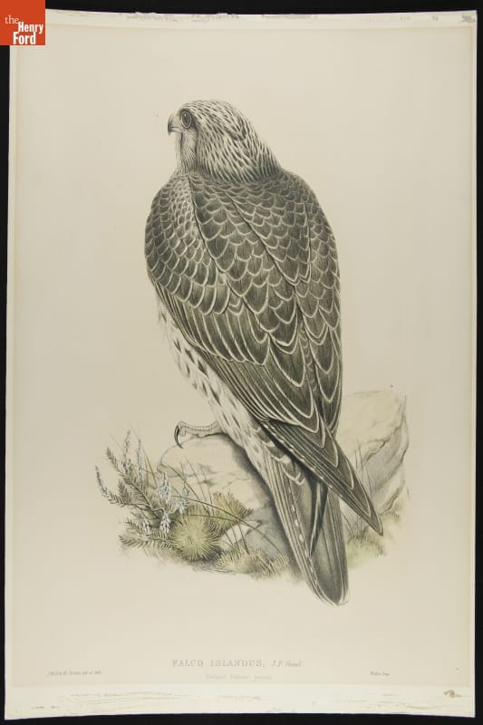 Lithograph, "Falco Islandus, J.F. Gmel., Iceland Falcon, Young," 1845-1881