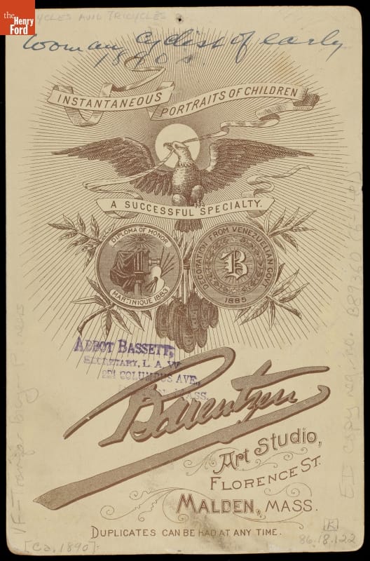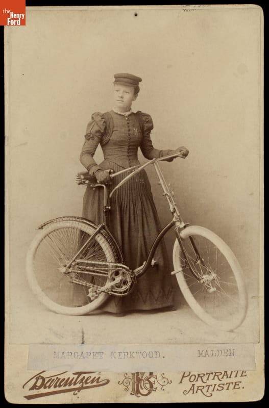 Bicycles meant a measure of independence for many 1890s women. Margaret Kirkwood of Malden, Massachusetts, even brought hers to a portrait studio.