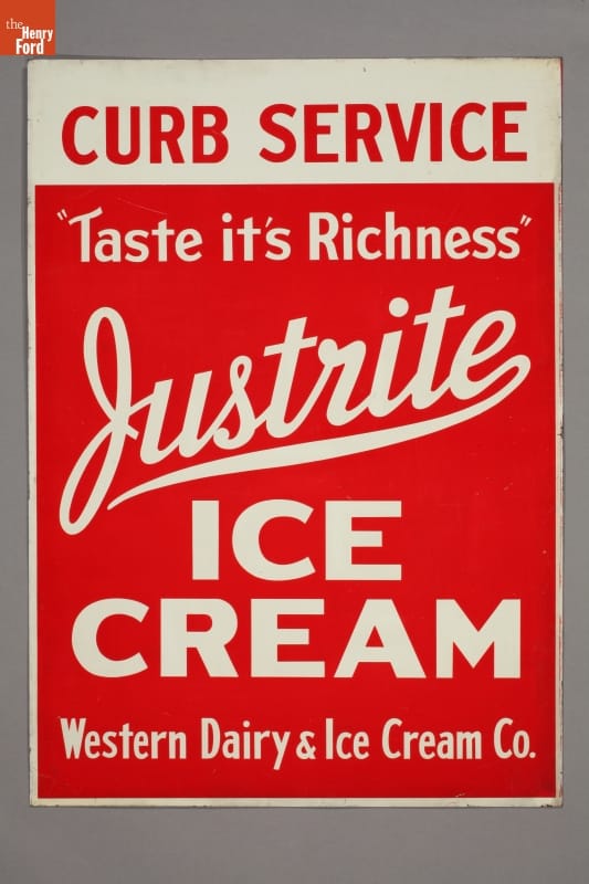 CURB SERVICE / "TASTE IT'S (sic) RICHNESS" / JUSTRITE / ICE / CREAM/ WESTERN DAIRY & ICE CREAM CO.