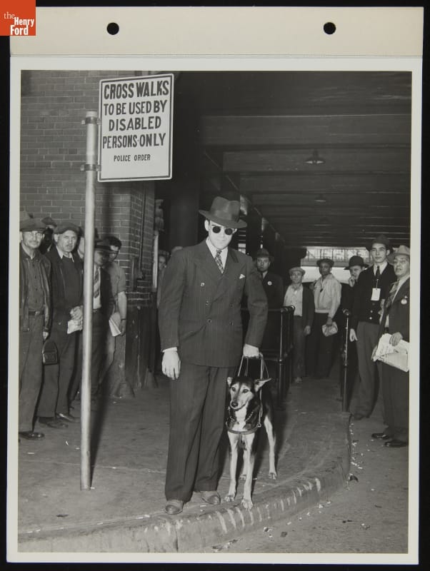 Henry Ford believed in providing equal employment opportunities to people with disabilities -- a practice he began in the early years of his company. During World War II, Ford employed thousands of workers with disabilities. In October 1942, Ford Motor Company photographed Sylvester Rypkowski and his service dog, Blackie, as they became members of the Rouge plant's workforce.