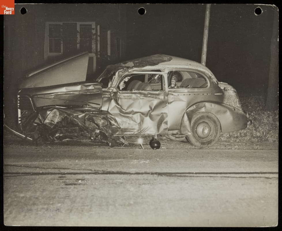 Automobiles are fast, powerful, and potentially dangerous. Accidents like the wreck pictured here became more commonplace as automotive speeds and the number of drivers on American roads rapidly increased in the 20th century. Eventually, manufacturers, governments, and drivers themselves were compelled to improve automotive safety.