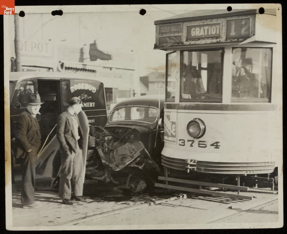 Traffic Accident Involving a Car, Dairy Truck, and Streetcar, Detroit, Michigan, 1930-1945