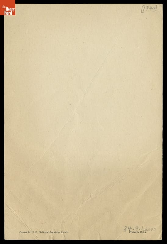 Roseate Spoonbills / from An Original Painting by Riger Tory Peterson / The Roseate Spoonbill is one of the rare and beautiful birds protected by the National Audubon Society at its rookeries in Florida and Texas. / THE NATIONAL AUDUBON SOCIETY, 1006 FIFTH AVENUE, NEW YORK 28, N. Y. /
