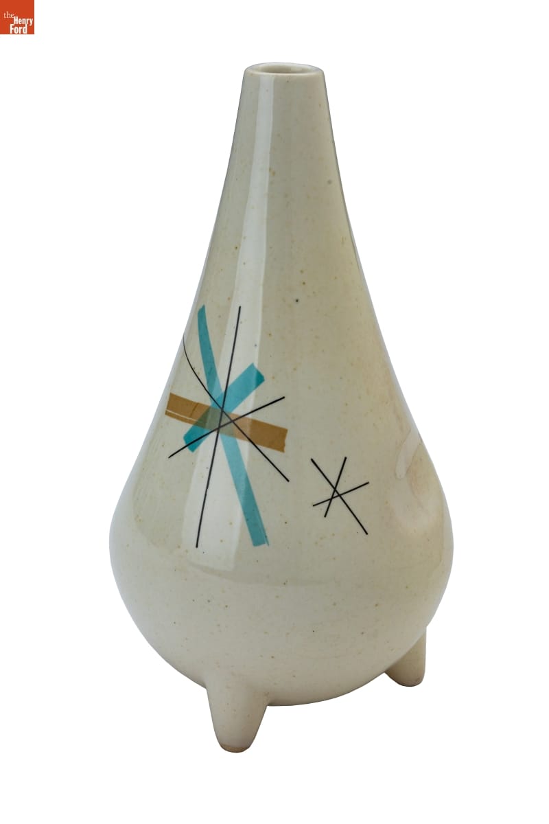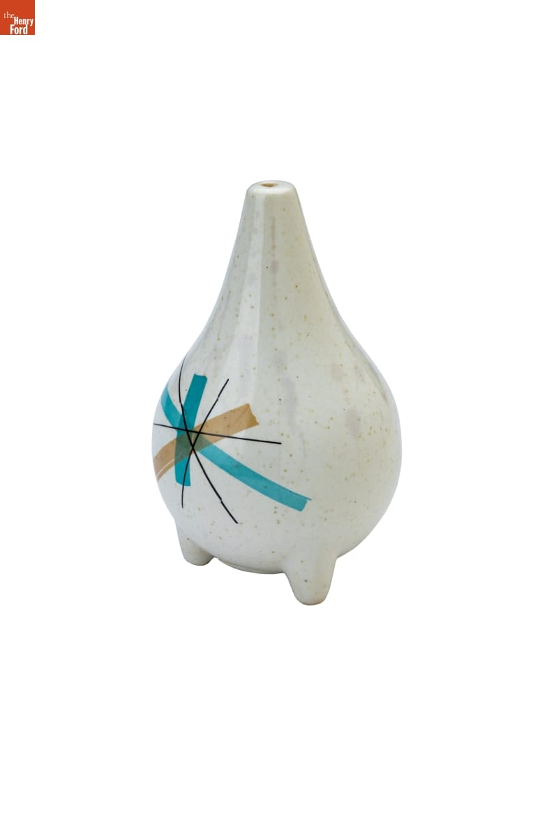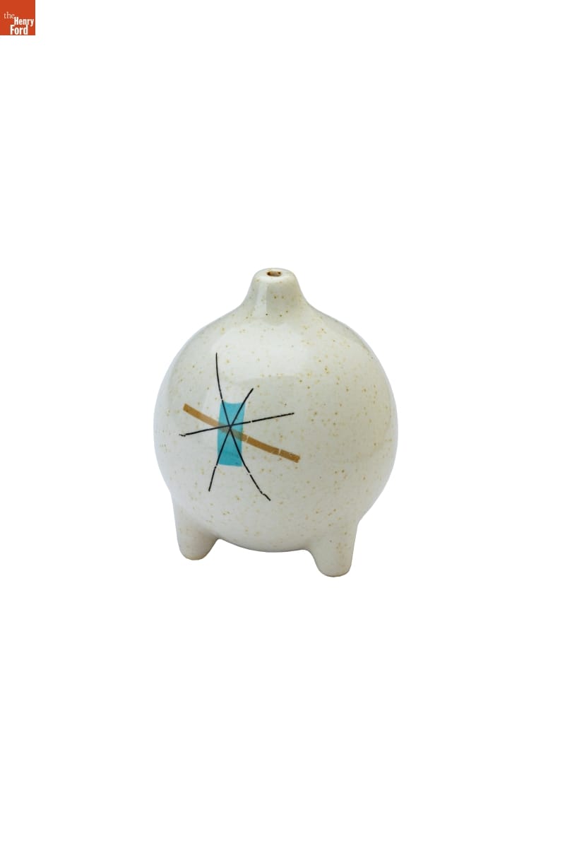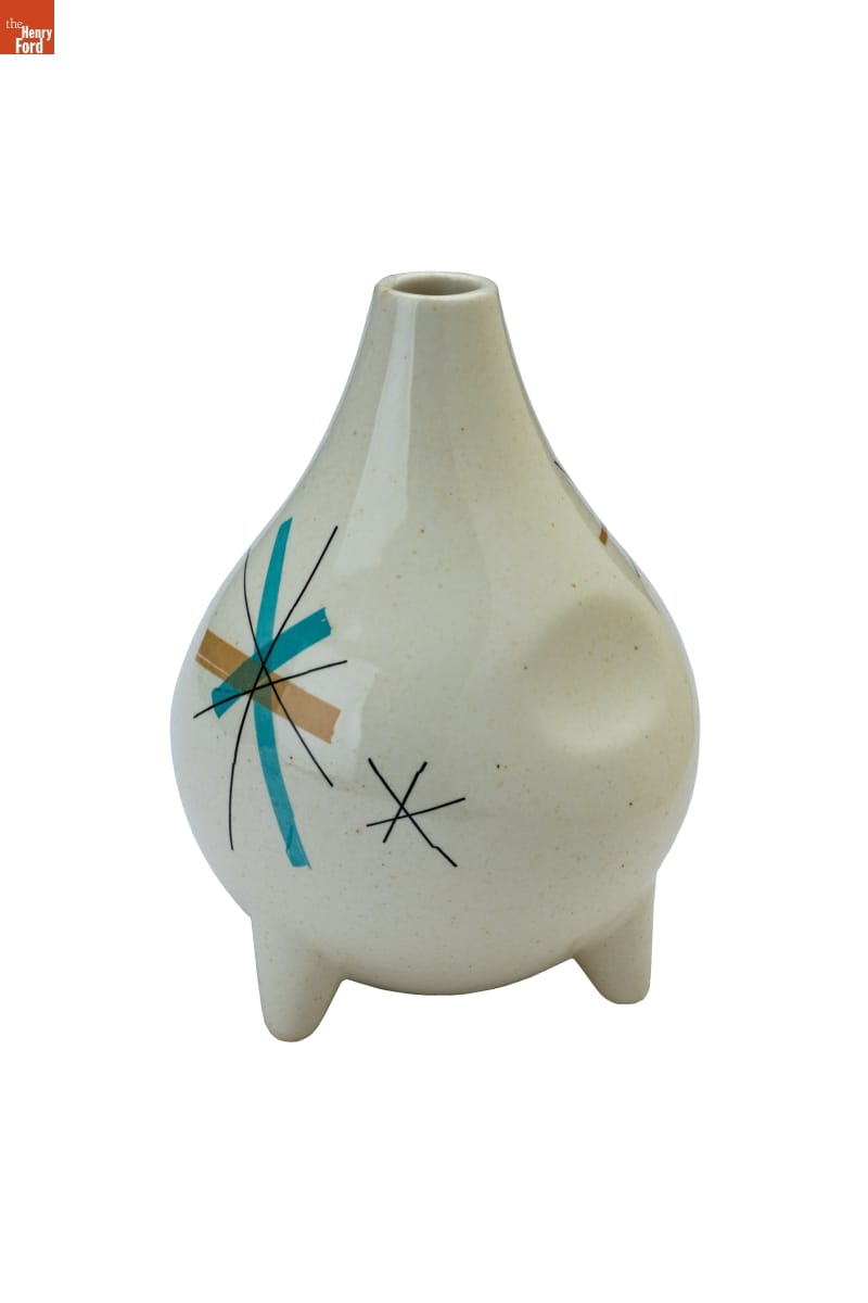 Industrial designer Vicktor Schreckengost (1906-2008) began working for the Ohio-based Salem China Company in the 1930s after graduating from the Cleveland School of the Arts. Schreckengost created new and distinctive shapes and patterns for the company, including this "Hopscotch" pattern in the 1950s. The company later simplified and renamed it "North Star," a pattern that became emblematic of middle-class tastes of the 1950s and 1960s.