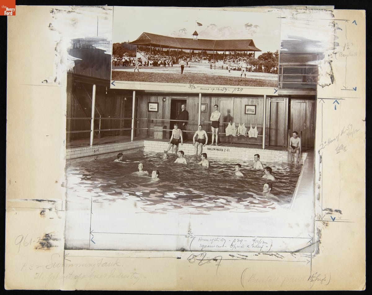 Advertising Layout Photograph of Heinz Company Employee Swimming Pool and Heinz Baseball Team, circa 1912